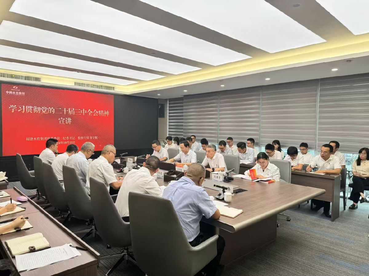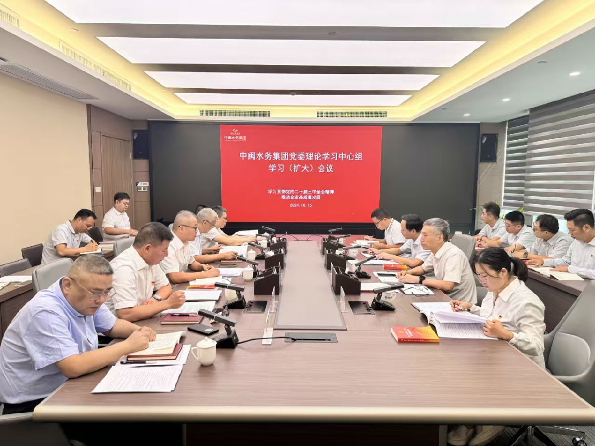10月15日,集團(tuán)公司黨委委員、紀(jì)委書(shū)記、監(jiān)察專(zhuān)員翁宇航到中閩水務(wù)集團(tuán)宣講黨的二十屆三中全會(huì)精神并開(kāi)展黨委理論學(xué)習(xí)中心組學(xué)習(xí)巡聽(tīng)旁聽(tīng)。